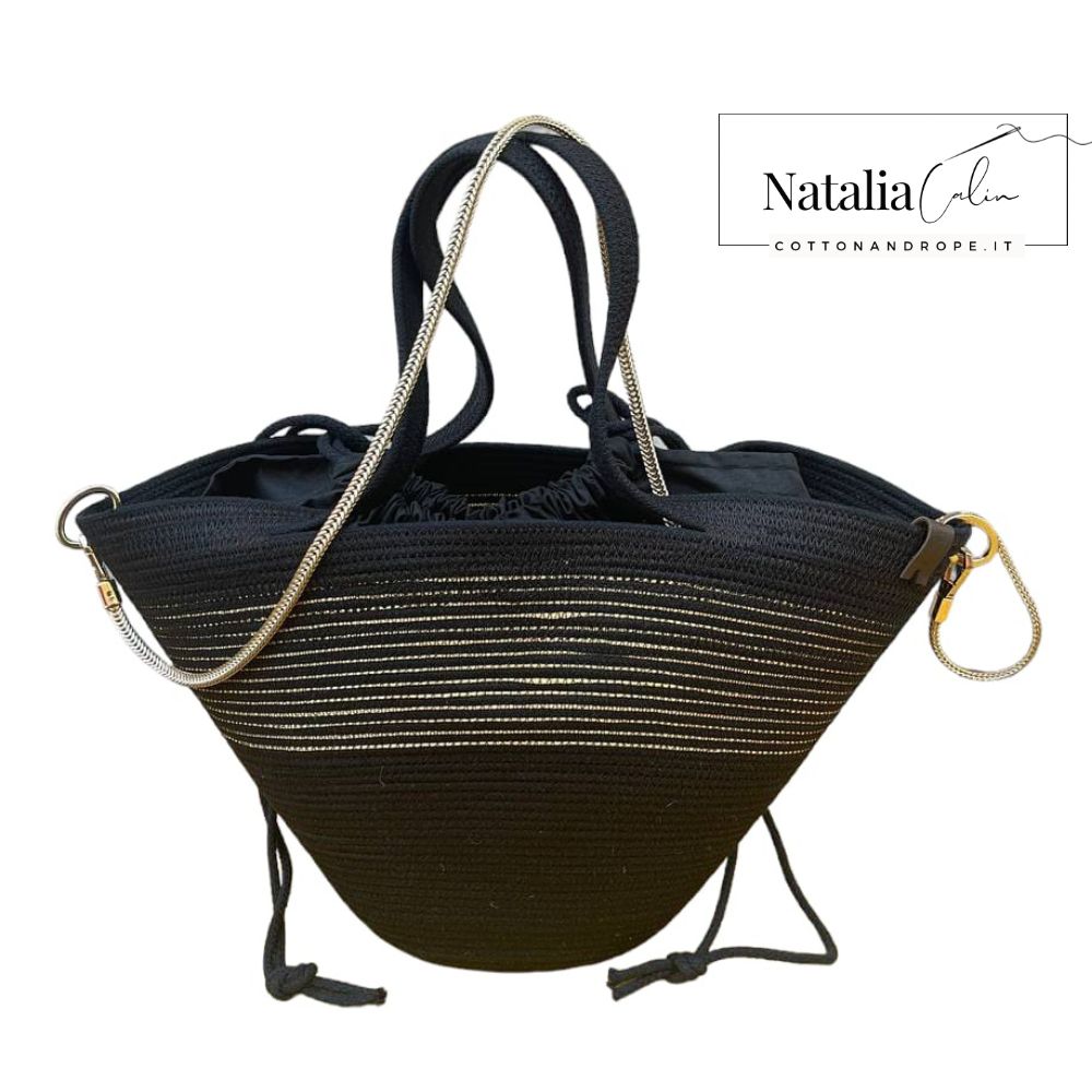 Ho acquistato una borsa da Natalia che dire spacchettando il pacco me ne sono follemente innamorata ho scelto questo prodotto in corda perché adoro tessuti che venivano utilizzati dai nonni anni anni dietro e portarli in produzione non ho potuto farne a meno, dalla foto alle volte non rende ma poterla vedere di presenza è stata proprio una bella emozione sopratutto quando si è amanti di borse, Ho visto la sua collezione una più bella dell’altra ma io ho scelto nera a mano di un’eleganza fine…Grazie Natalia complimenti per la tua creazione