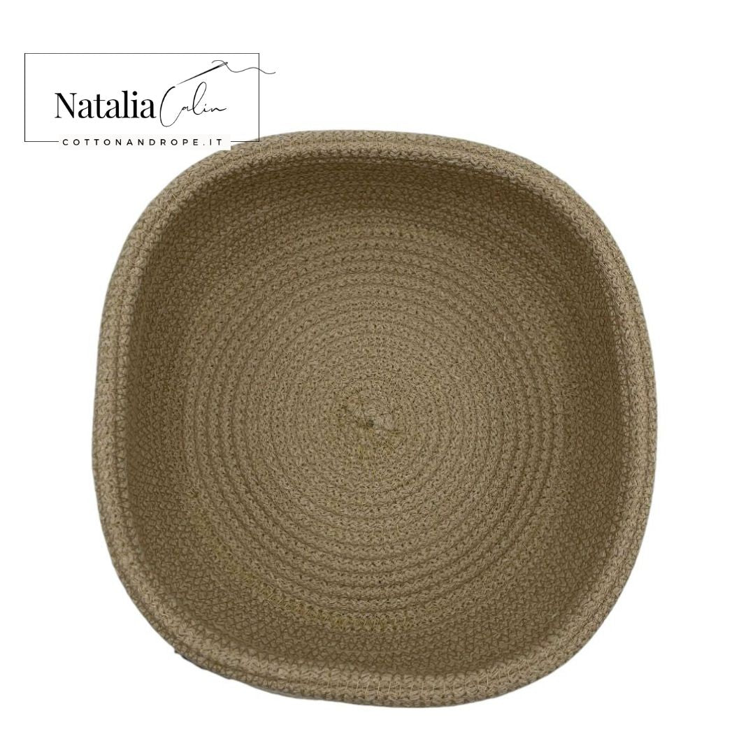 UNICITA' ARTIGIANALE: i prodotti realizzati in corda di cotone possono presentare lievi differenze rispetto alle foto mostrate, trattandosi di prodotti realizzati interamente a mano ciò è normale e garantisce anche l'unicità del prodotto artigianale.