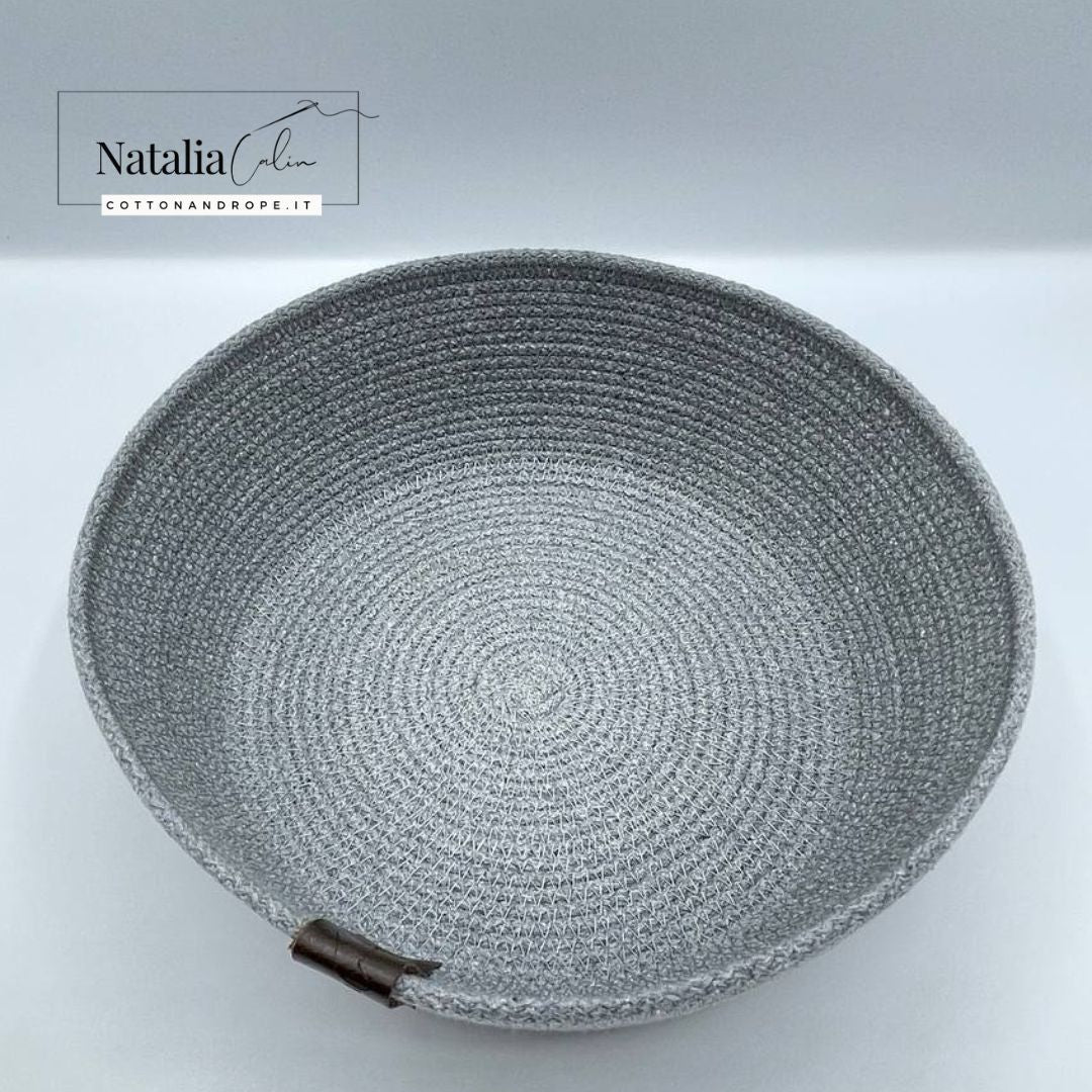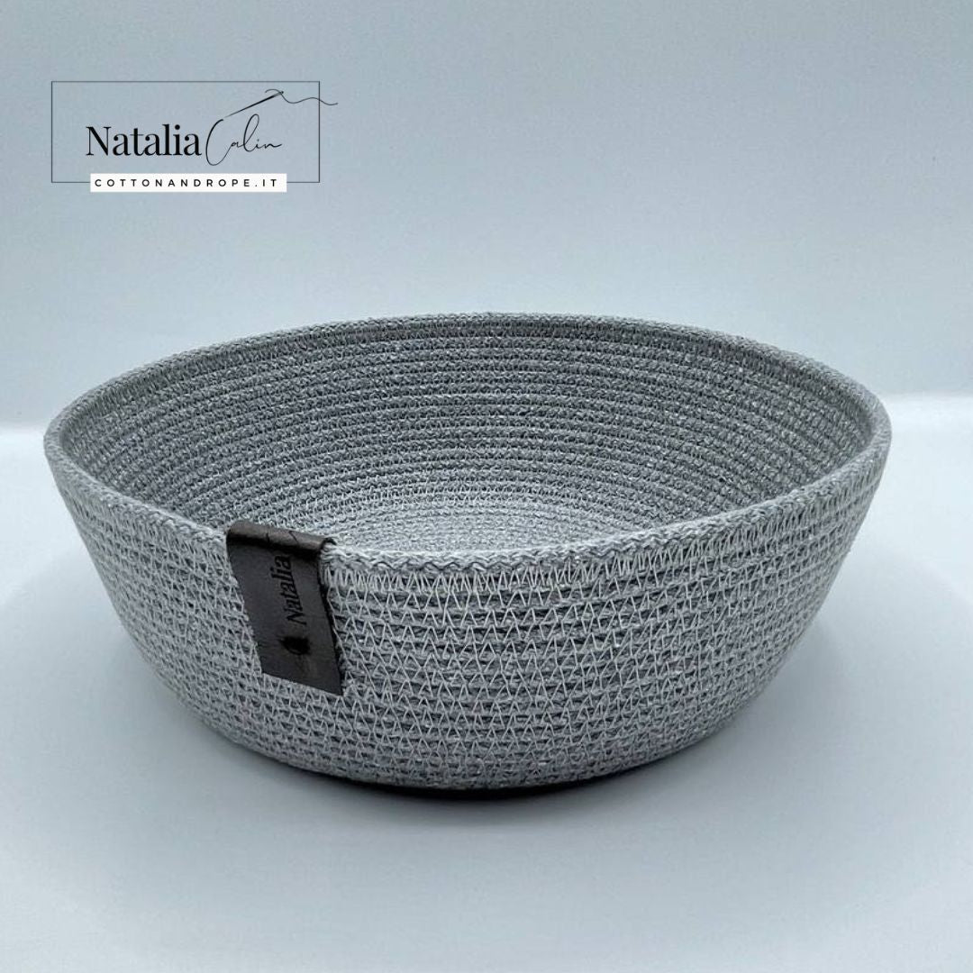 Cestino / contenitore in corda di cotone, diametro 22 cm, altezza 9 cm, 100% fatto a mano in Italia
