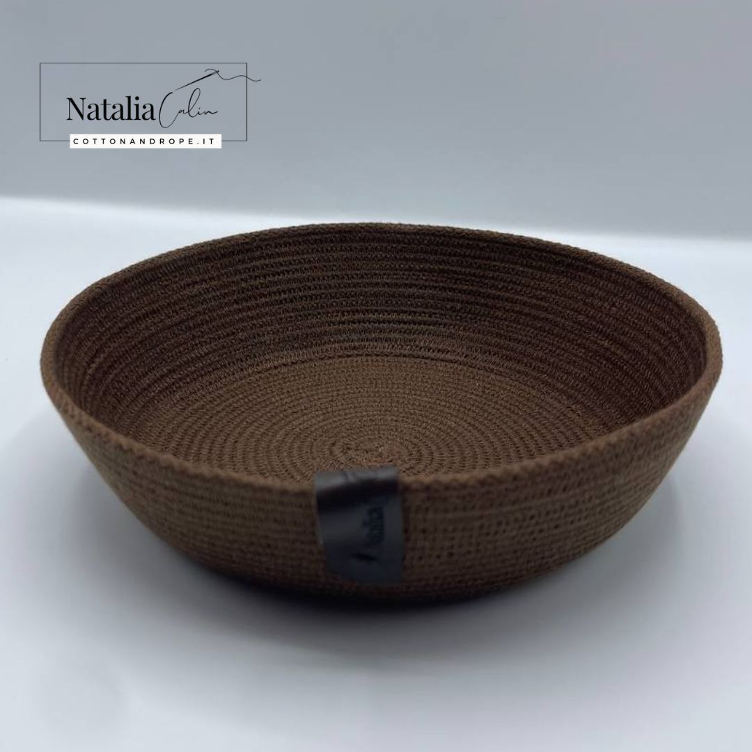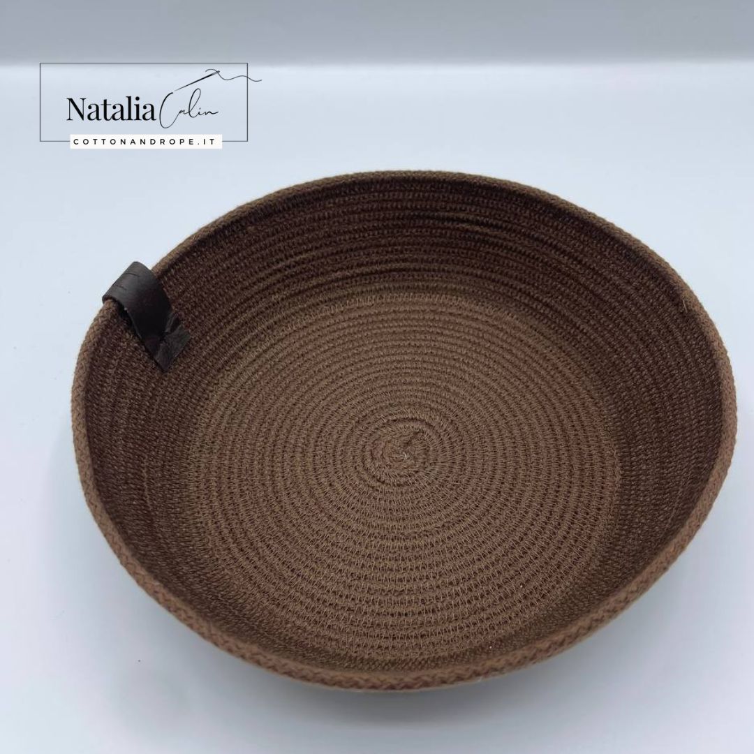 Cestino / contenitore in corda di cotone, diametro 25 cm, altezza 8 cm, 100% fatto a mano in Italia